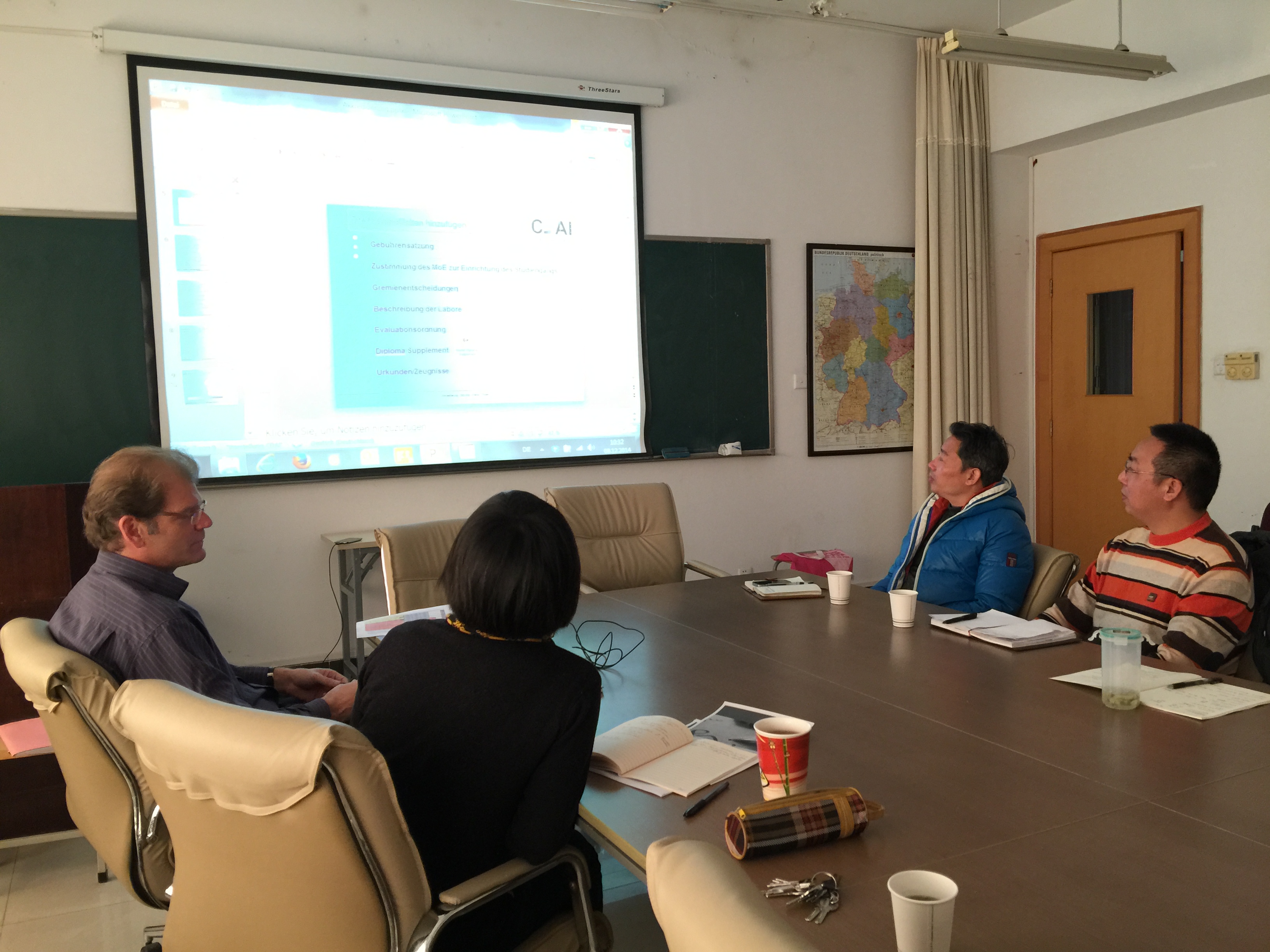 与会人员包括了成人视频 夏院长、德方院长Oldsen先生以及成人视频 专业老师等。会议主要就专业认证的目的、认证的过程以及认证需要提供的材料三方面展开了讨论。