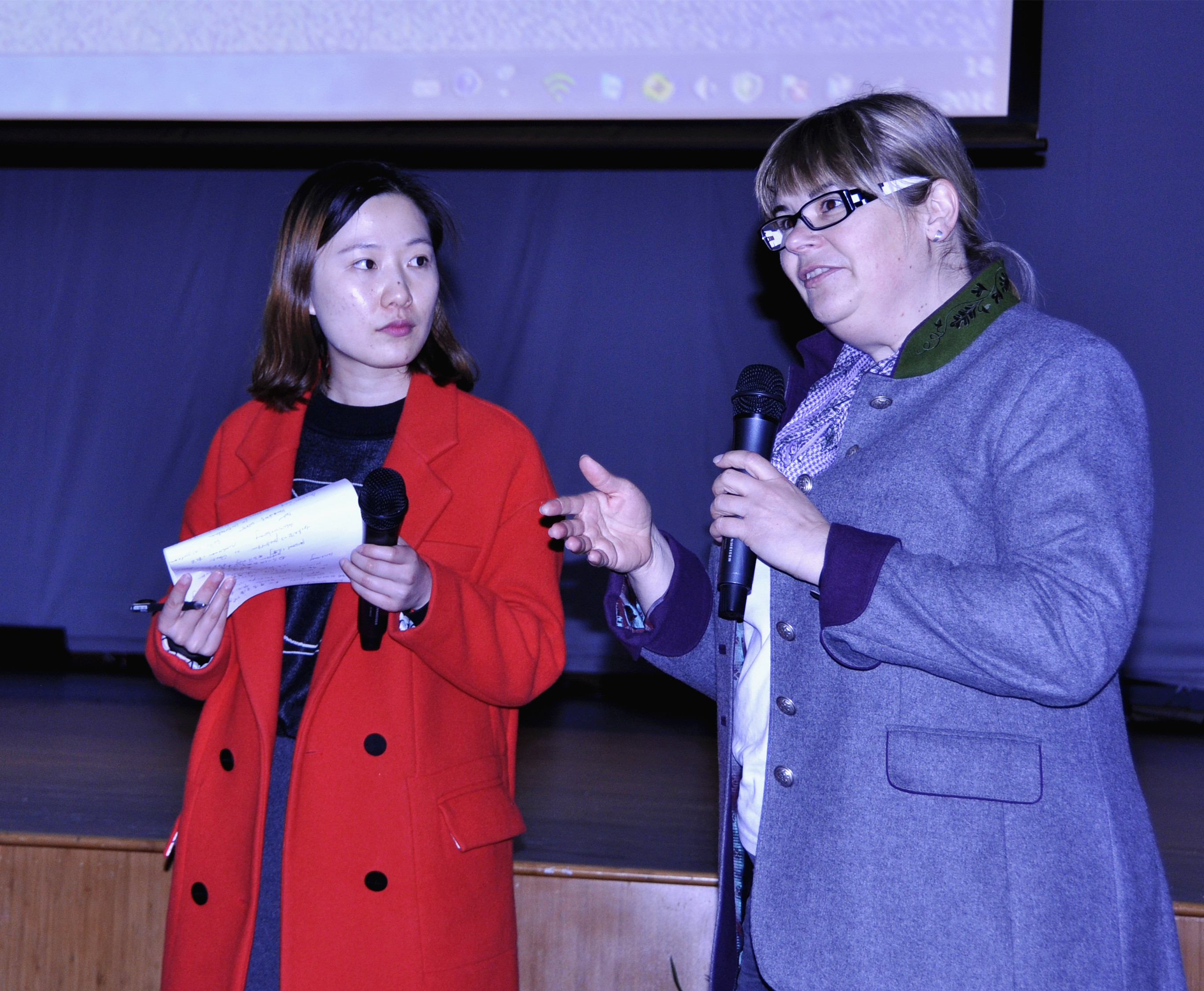 柯尔希教授就电气专业学习、实习、就业等问题进行发言。他鼓励大家掌握扎实的专业知识和德语,积极参与到企业实践中,提高自身的竞争力。随后的提问环节,多名同学运用德文、中文等就自身的困惑提出疑虑。柯尔希教授对大家的语言能力表示肯定,并热情地答疑解惑。来自德国的Frau Schneider 也为同学详细解答了实践与就业等大家关切的问题。成人视频 徐梦阳老师担任现场翻译。
