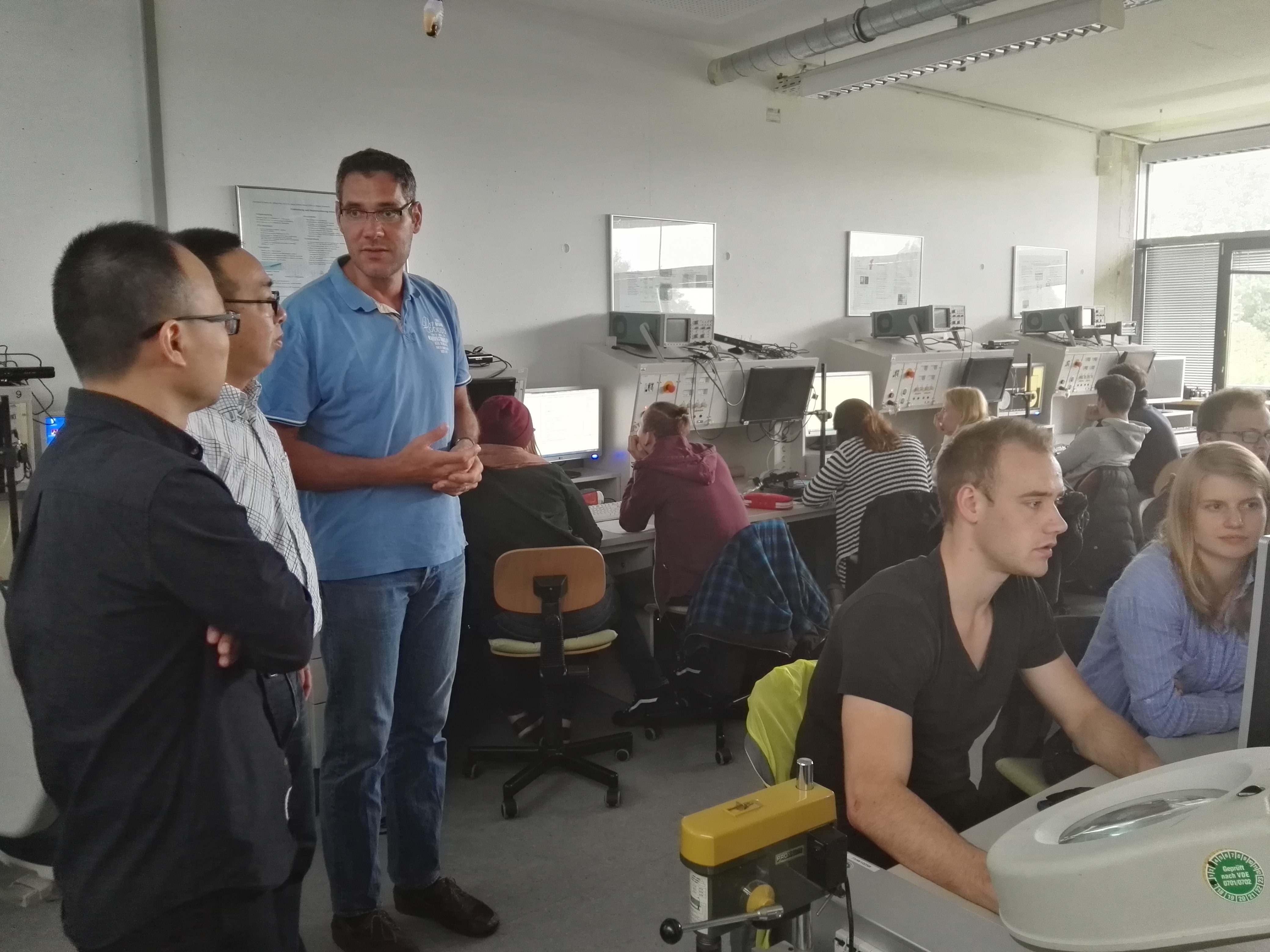 访问期间,我方教师同多位德方教授进行了有关课程教学和实习教学的探讨,进一步了解了德国西海岸应用科学大学合作专业“管理与技术”(MUT)的总体教学情况、实验室情况以及相关教学要求。中方教师同德方布劳恩(Blaue)教授重点探讨了C#课程的教学,围绕课程考核方式的改革开展了引入项目式考核的探讨,并现场观摩德方穆勒(Müller)教授的“标准商务编程”的实践课程,同德方实习负责人艾伯格(Ebberg)教授深入探讨了EAM(电气工程及其自动化专业)学生的实习模块教学及赴德学生的实习教学与答辩的衔接问题,以及同MUT专业负责人瑞兹(Rietz)教授探讨了赴德学生的跨学科项目和高级项目教学的开展。此外,中方教师还同德方工程成人视频 院长廷森(Jensen)教授讨论了成人视频 的实验室建设问题。