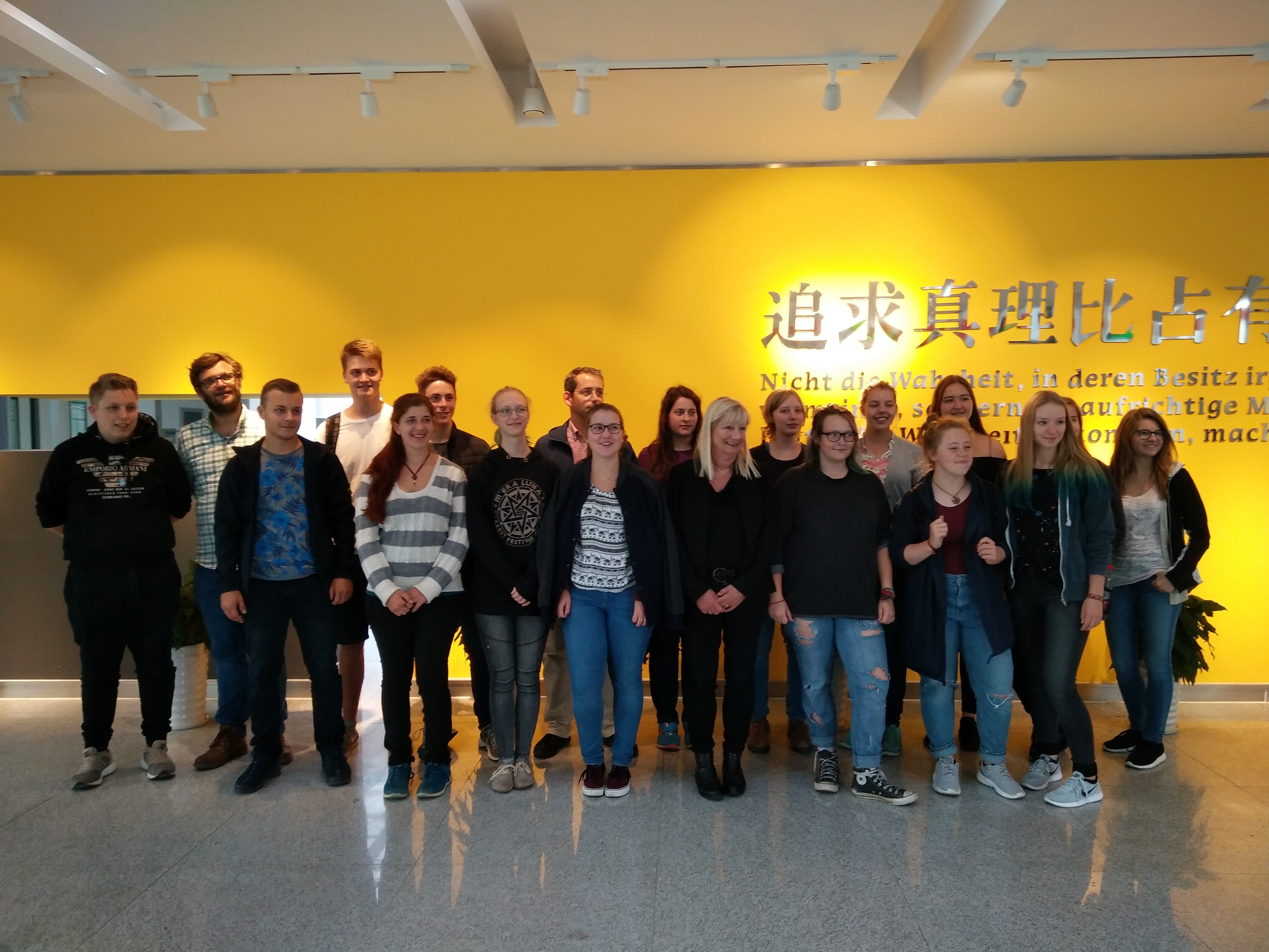 10月13日中午,在中方项目协调员安德鲁斯·哈姆斯(Andreas Harms)、迈克尔·斯达姆麦尔(Michael Stammeier)、部门主管芭芭拉·布克斯(Barbara Bucksch)的带领下,来自德国北部石荷州小城奥伊廷(Eutin)职业中学的学生代表团一行19人来成人视频 进行参观和访问,成人视频 院长徐理勤、教成人视频 长弗兰克·坎伯(Frank Kemper)、党支部书记李成炜及相关教师参加了见面交流会。