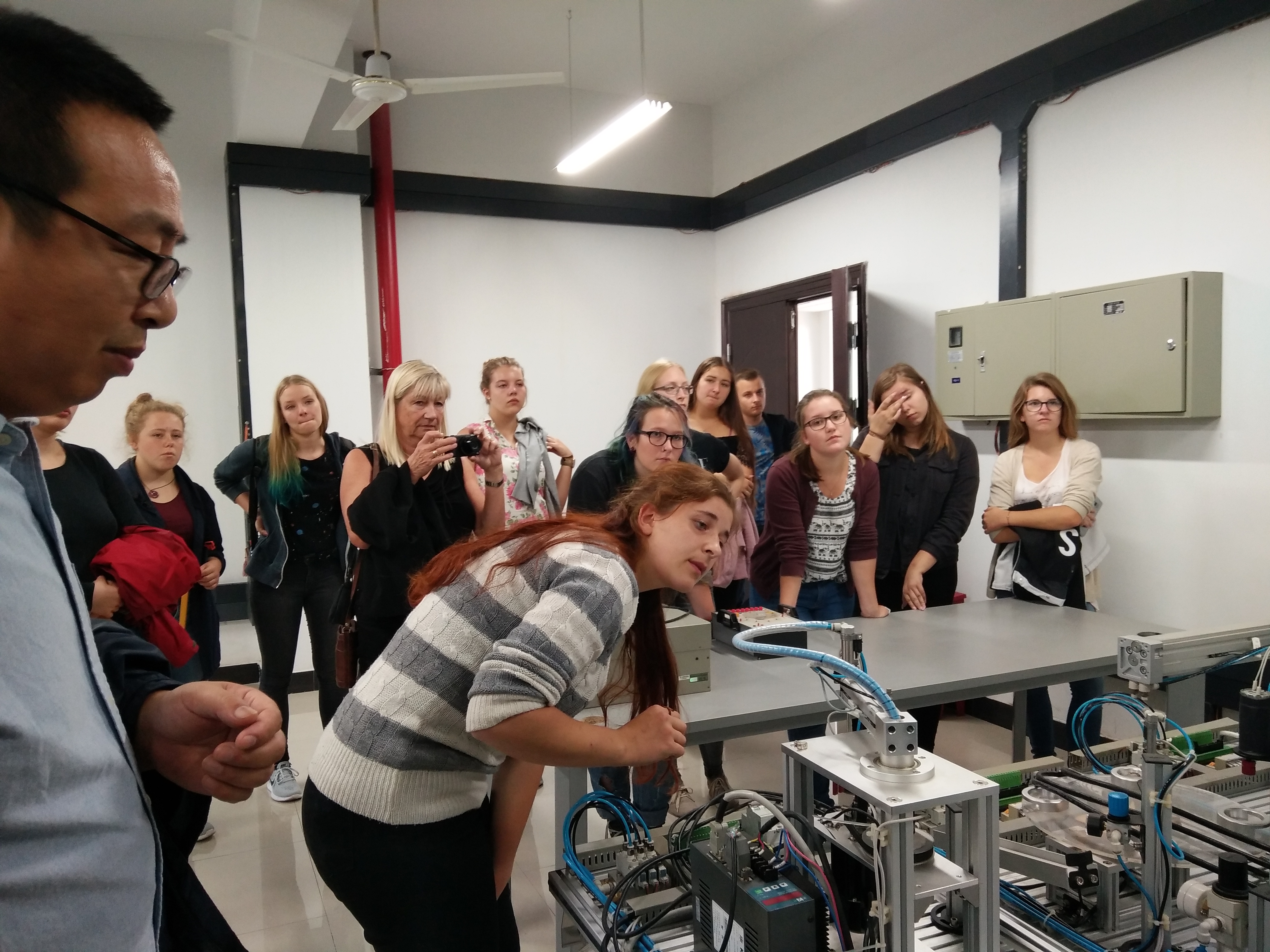 10月13日下午,成人视频 实验室工程师杨志卫带领学生代表团参观电气及其自动化专业的实验室,德国学生对自动化技术产生非常浓厚的兴趣,部分学生甚至主动参与设备演示与讲解。之后,成人视频 实验室工程师沈潇扬带领学生团参观土木专业的沥青实验室,向大家解释设备的运行方式和原理。最后,由成人视频 外事秘书吴一婷带领学生代表团参观中德合作馆,向德方代表团展示了成人视频 中德合作历程和合作成果,参观期间德方教师和学生提问了很多关于成人视频 专业设置、学生宿舍、实验室规模等问题。本次交流为成人视频 接收德国学位生打下了良好的基础。