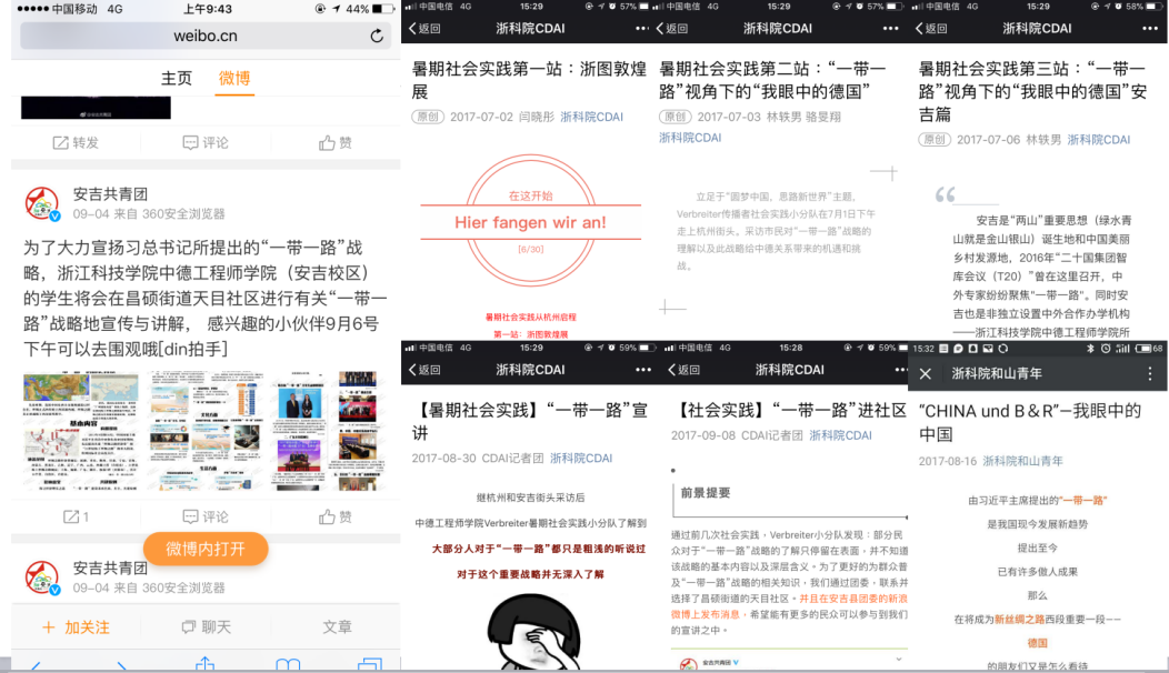 “Verbreiter”(传播者)分为两支小分队,海内外同步互动式街头采访一窥中德两国大众心中的彼此印象、中德关系以及“一带一路”的看法。国内小分队奔赴杭州和安吉街头。退休的老教授、干练的企业白领、超市工作的阿姨、留学回国的小姐姐、青春洋溢的初中生等均对“一带一路”表示强烈赞同并发表自身见解。海外小分队则以夏令营所在高校为据点发起街头访问,起到了良好的宣传效果。