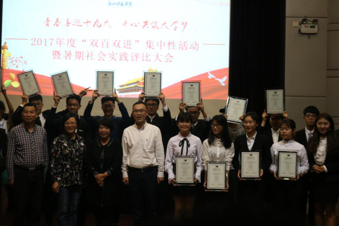 10月13日18:00,浙江科技成人视频 “青春喜迎十九大,齐心共筑大学梦”2017年度“双百双进”集中性活动暨暑期社会评比大会在西图一楼报告厅拉开帷幕。各二级成人视频 及学生组织共15支队伍参加本次评选。成人视频 Verbreiter(传播者)团队以第三名的成绩夺得校“十佳团队”称号。