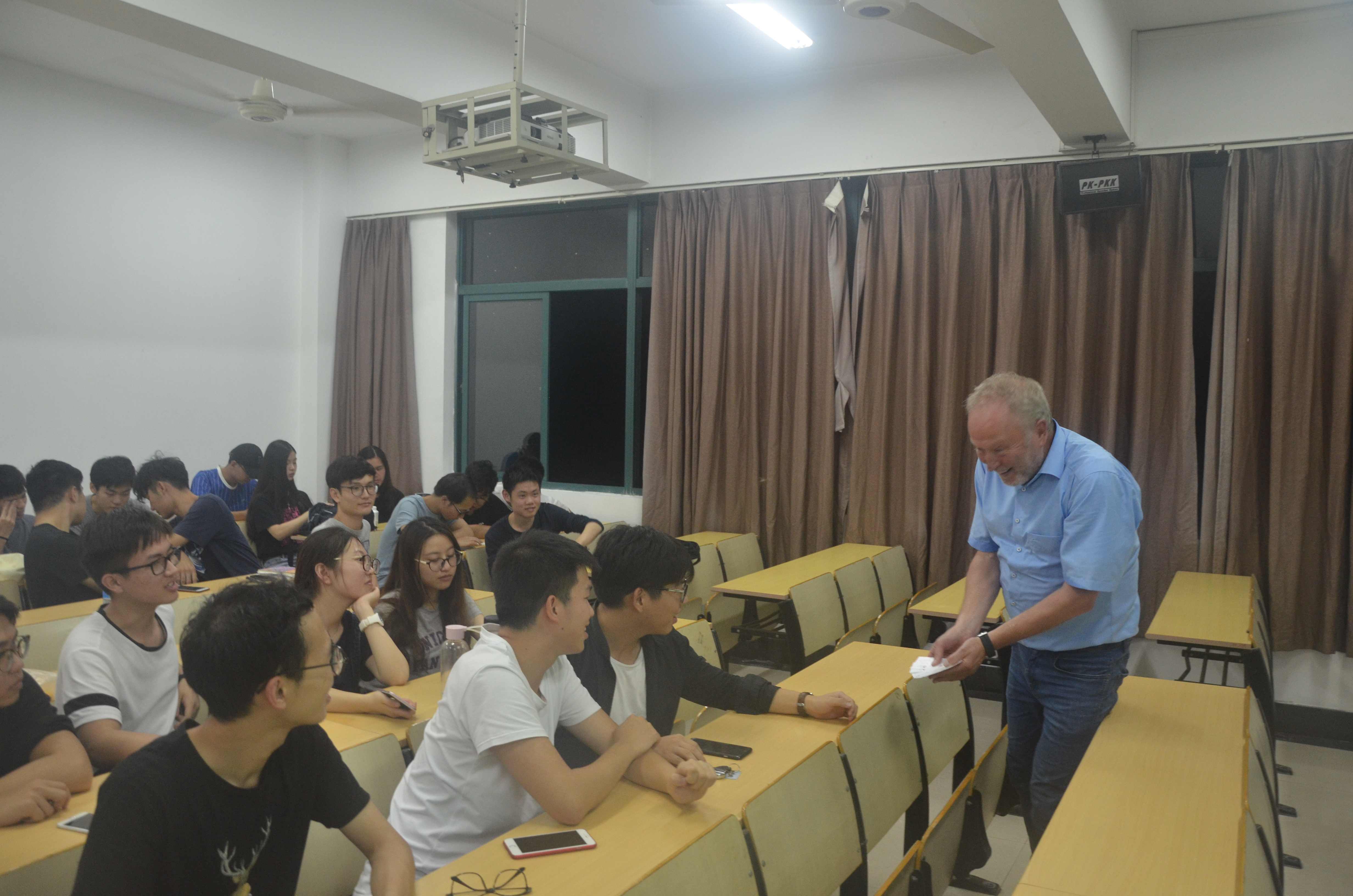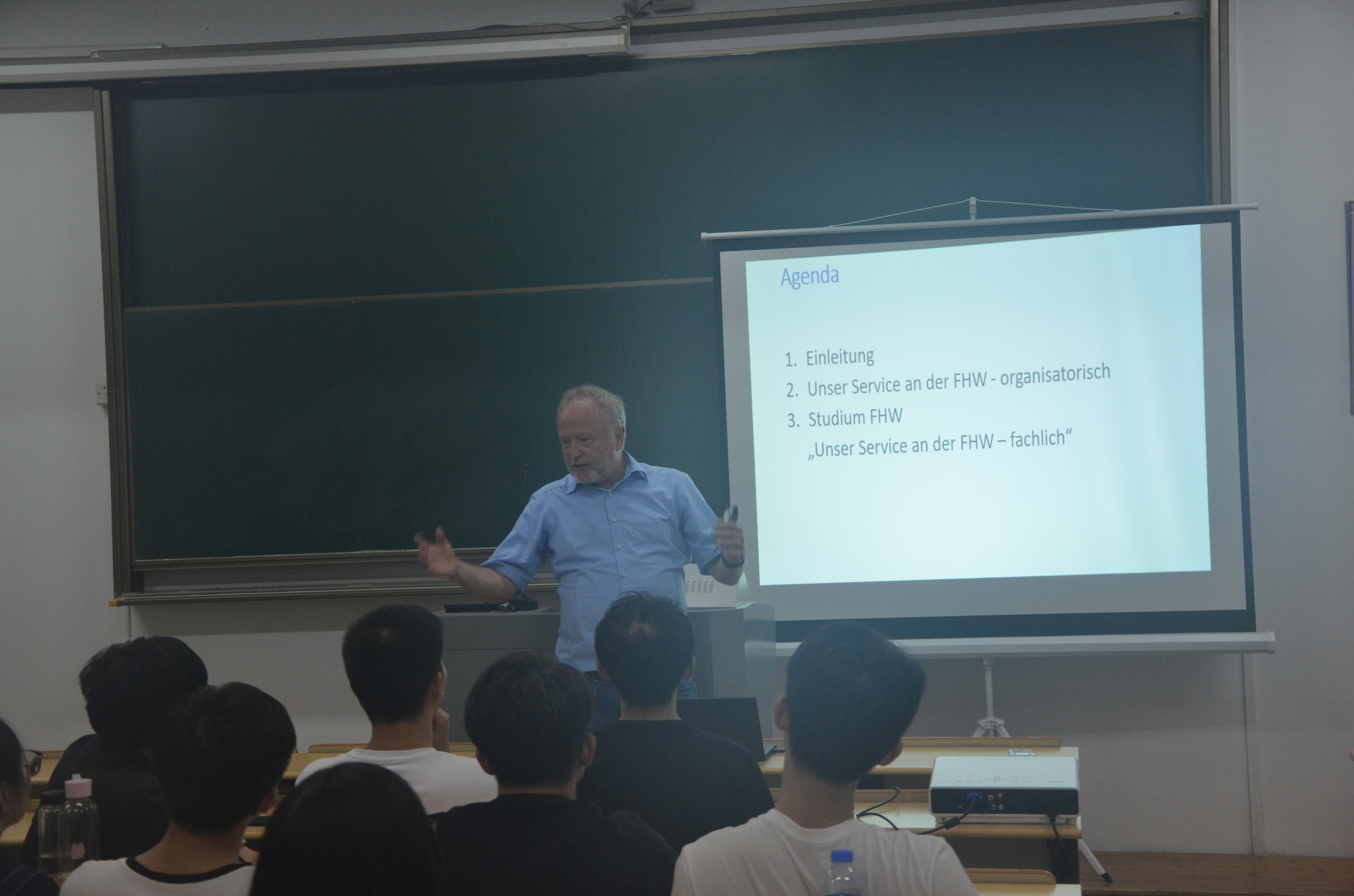 2017年9月28日18时30分于浙江科技成人视频 小和山小区B4楼421教室,德国西海岸应用科技大学工程成人视频 院长、德方专业负责人Detlef Jensen教授向14和15级电气专业学生进行了 关于“西海岸应用科技大学对成人视频 交换生生活以及学习方面服务”的讲座。