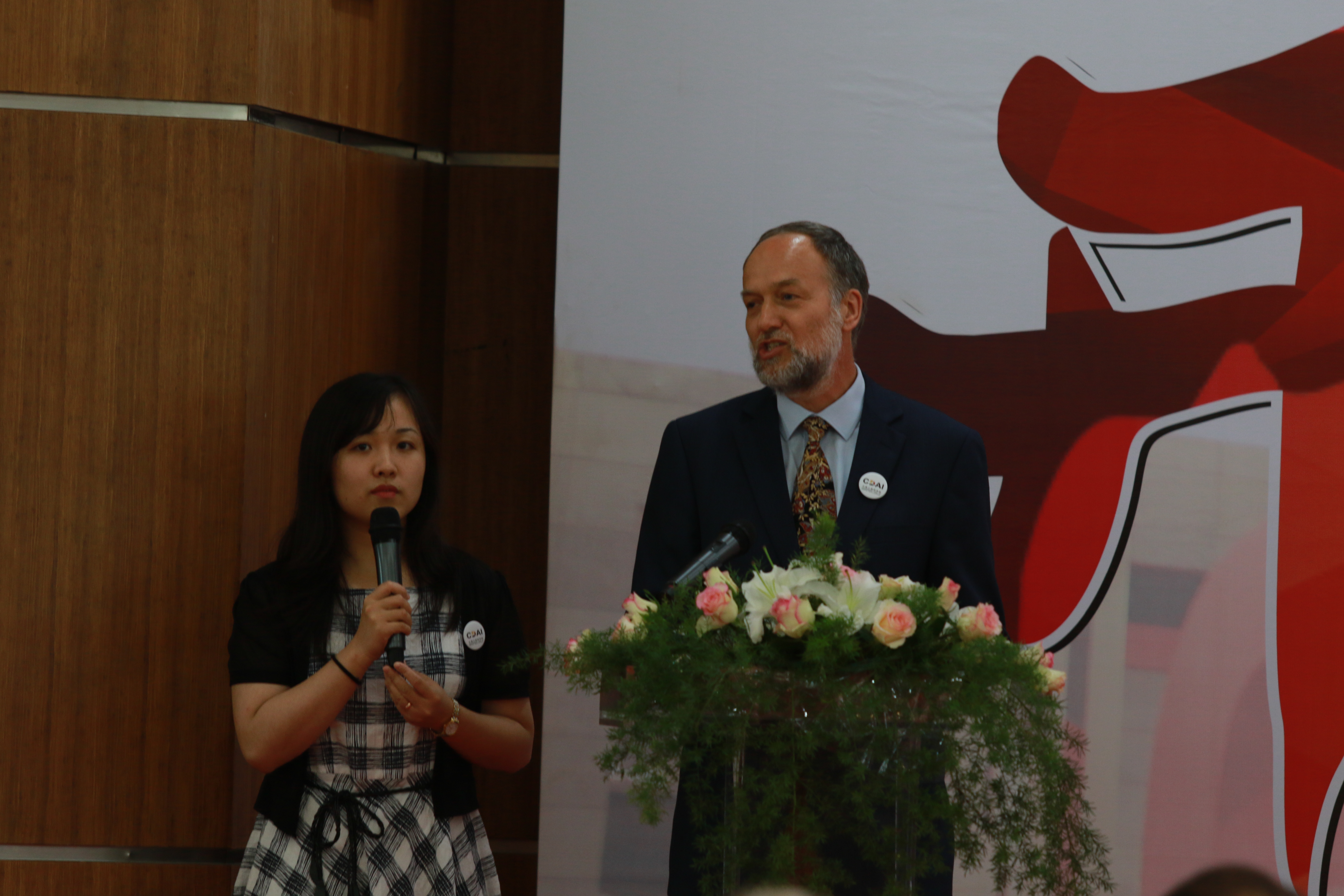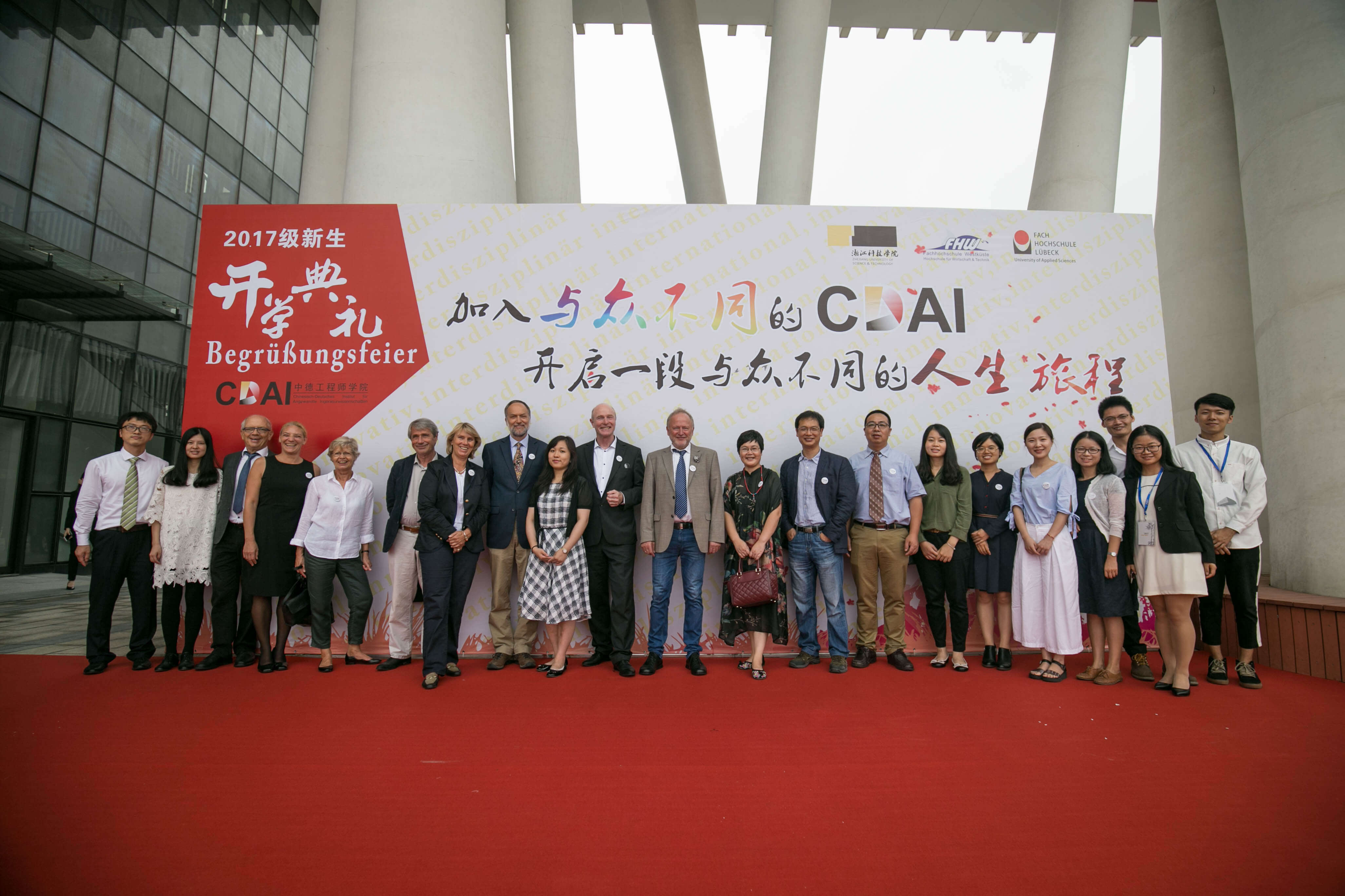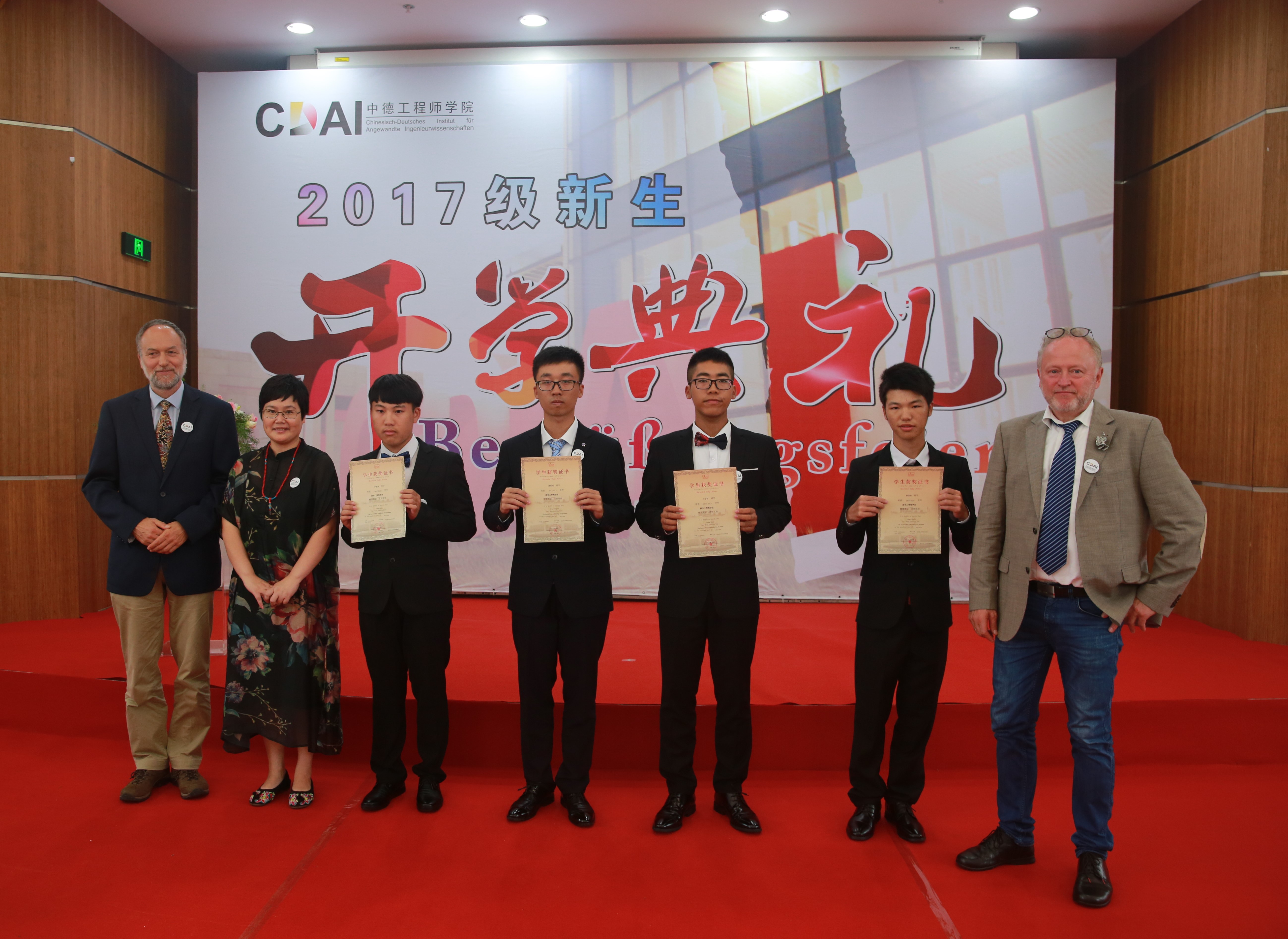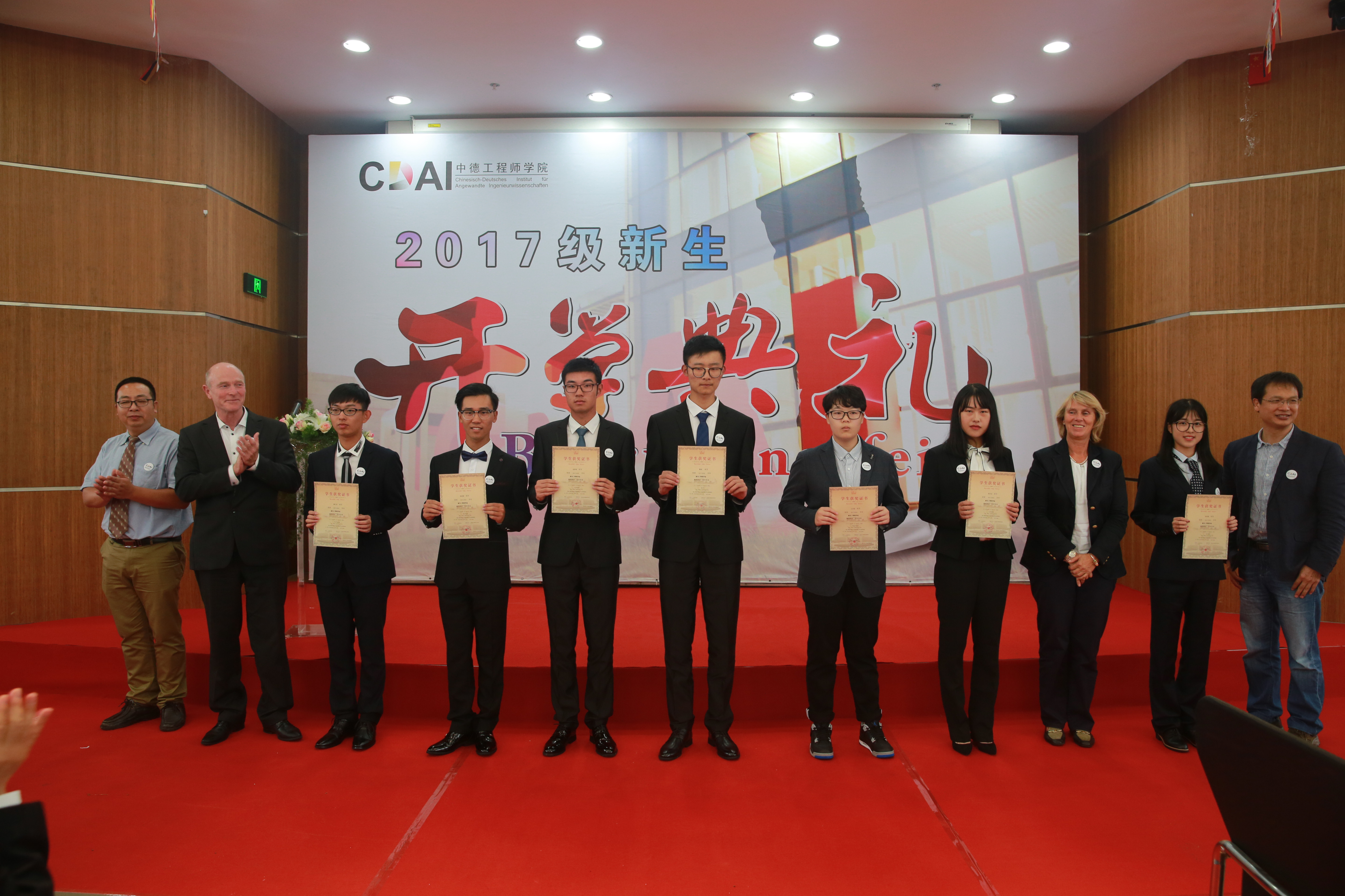 下午3:00,在悠扬箫乐中,典礼正式开始。成人视频 院长徐理勤教授开场欢迎,叶高翔教授、Matthias Grottker教授、Detlef Jensen教授分别为新生致辞,勉励所有17级新生努力学习,祝愿有一个无悔的大学四年。随后鲁伟权先生宣读新生奖学金获奖名单,中德双方教师们为获得奖学金的15位同学颁奖,鼓励其再接再厉。老生代表胡潇涵、新生代表陈胤合分别上台发言,分享经验、畅谈感悟、展望未来。期间,17、16级同学为大家带来精彩的表演。