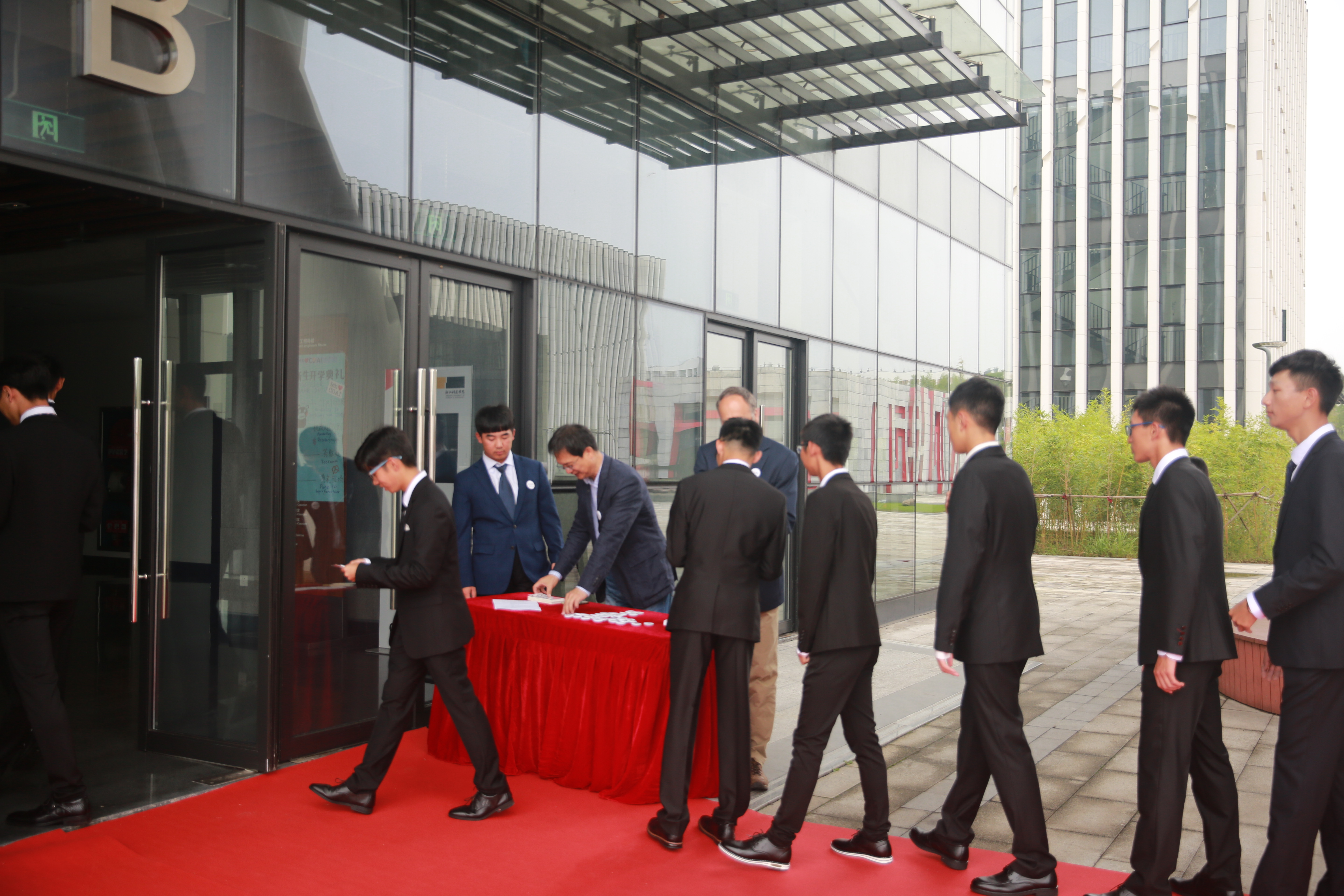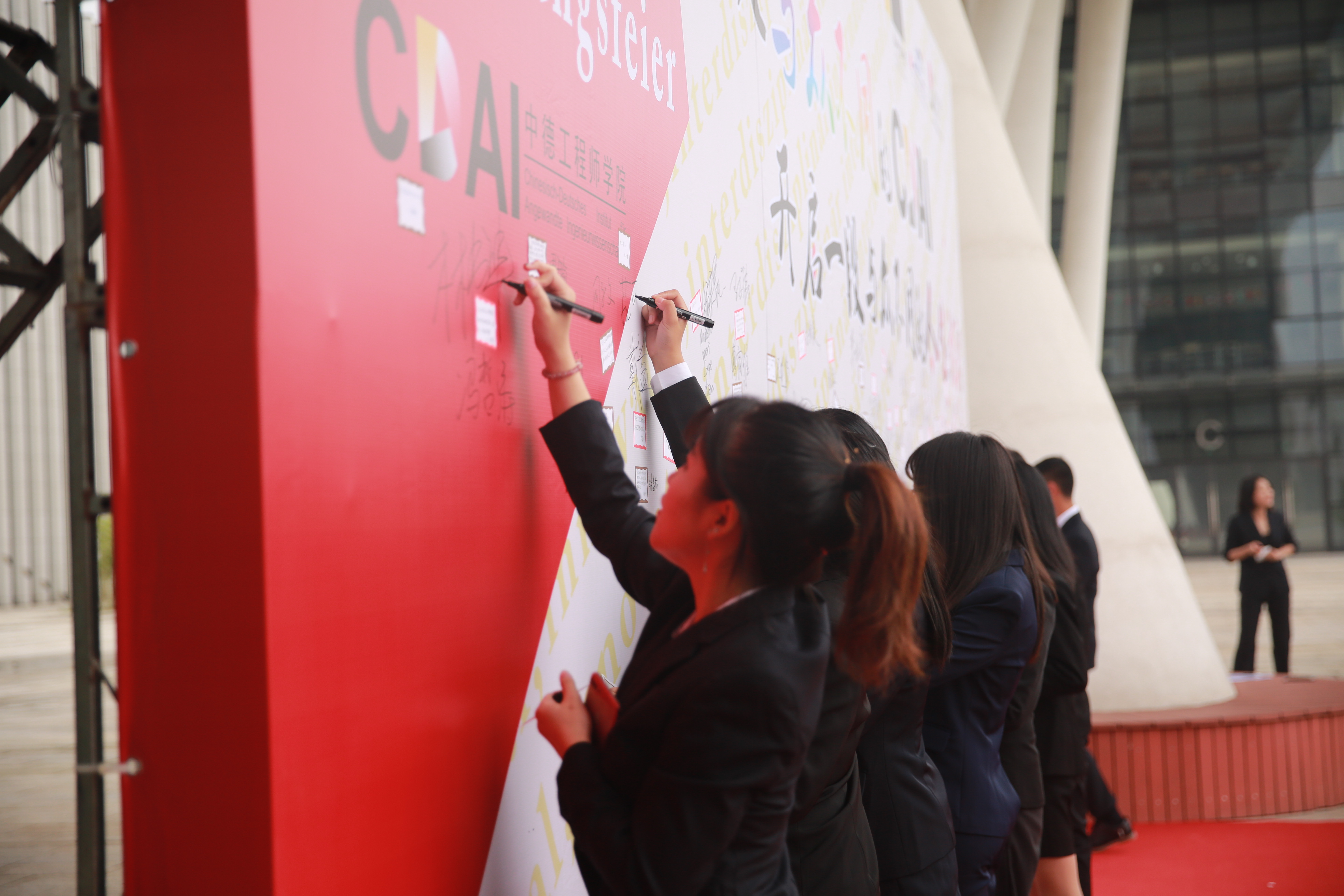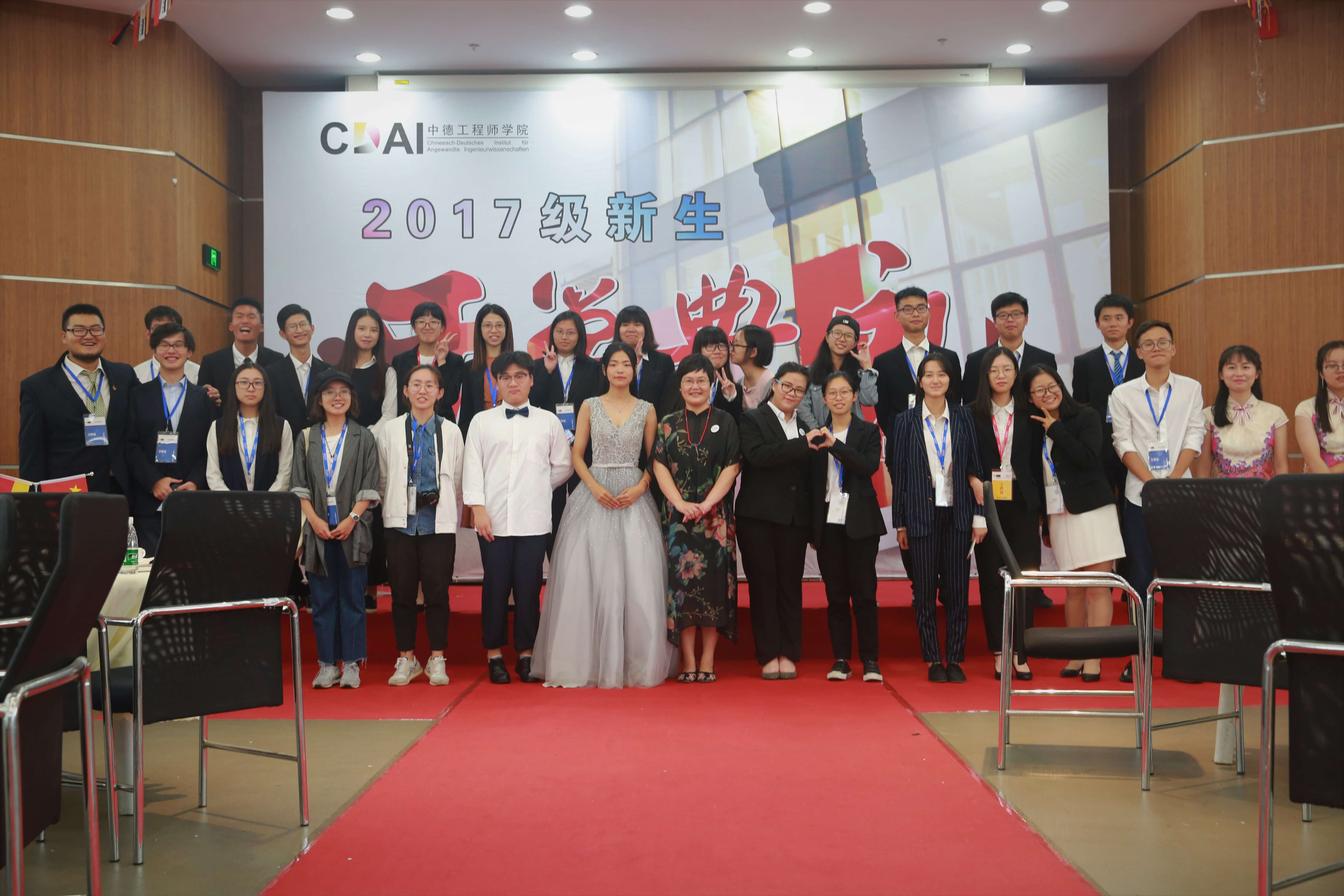 14:00,17级新生身着挺拔正装陆续走上红毯,在背景墙上贴下对未来的期许、签名并合影,从中德双方教师手中接过“Ich liebe CDAI”明信片与院徽,参观成人视频简介 和机器人团队的展示,庄重而活泼。