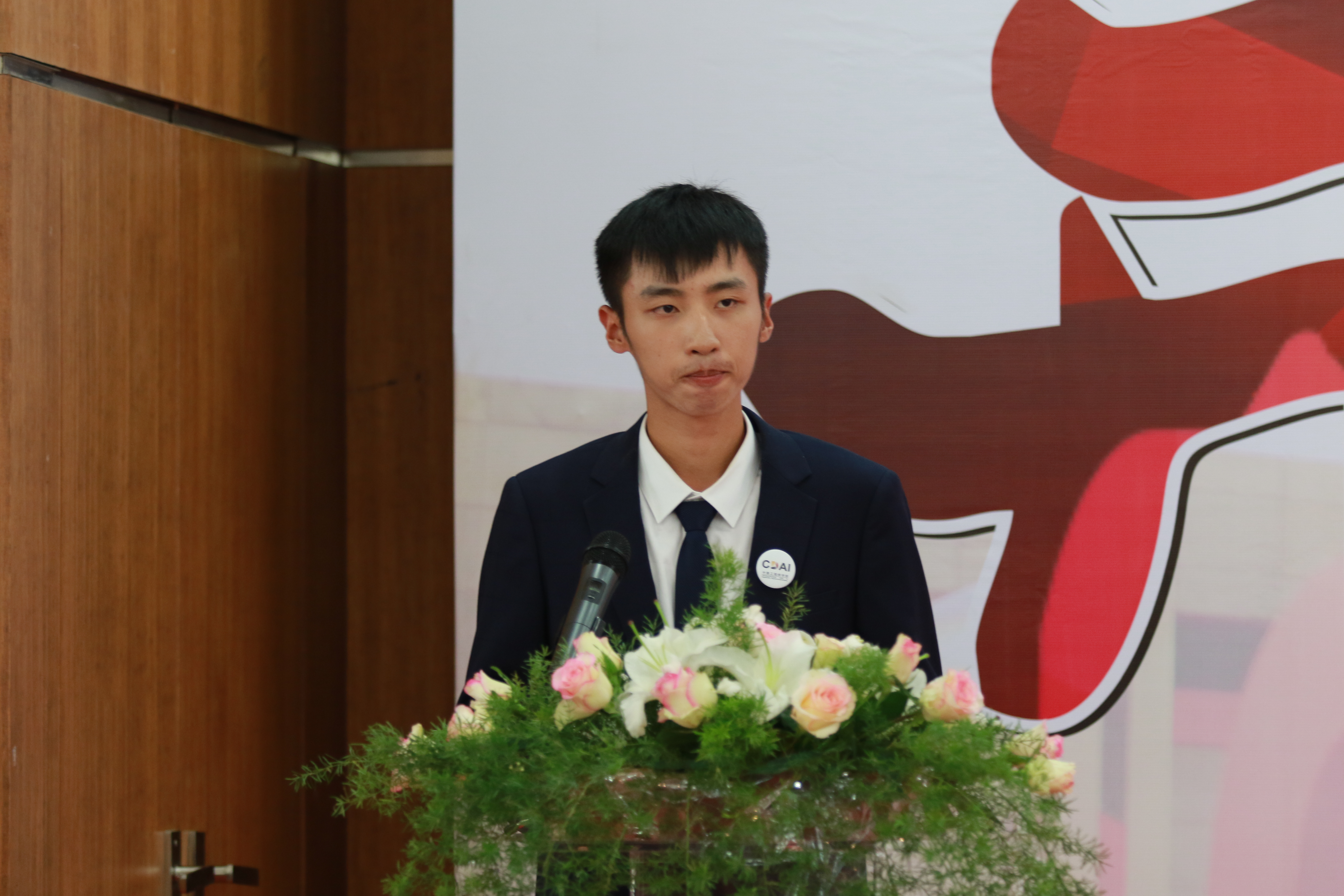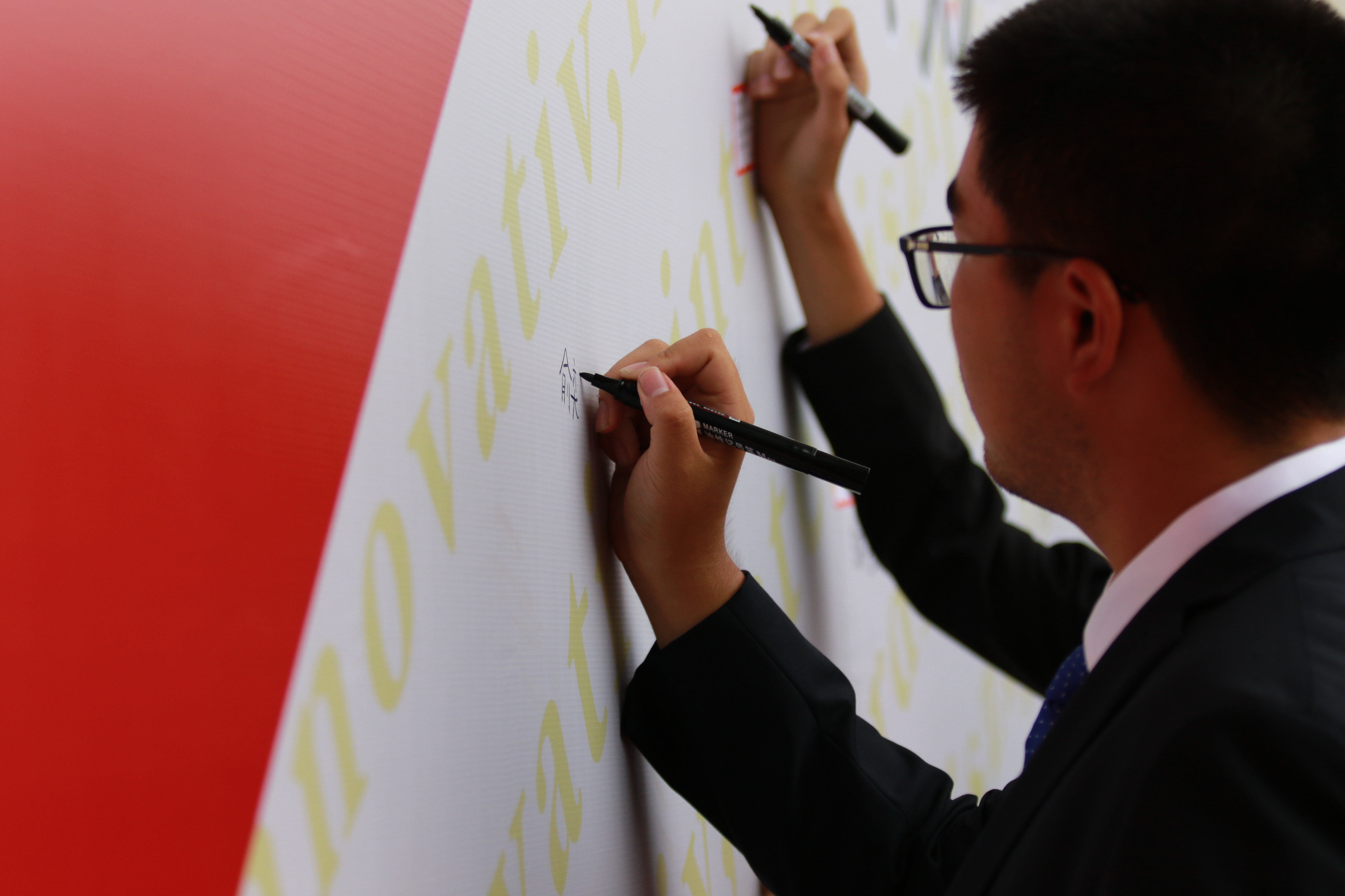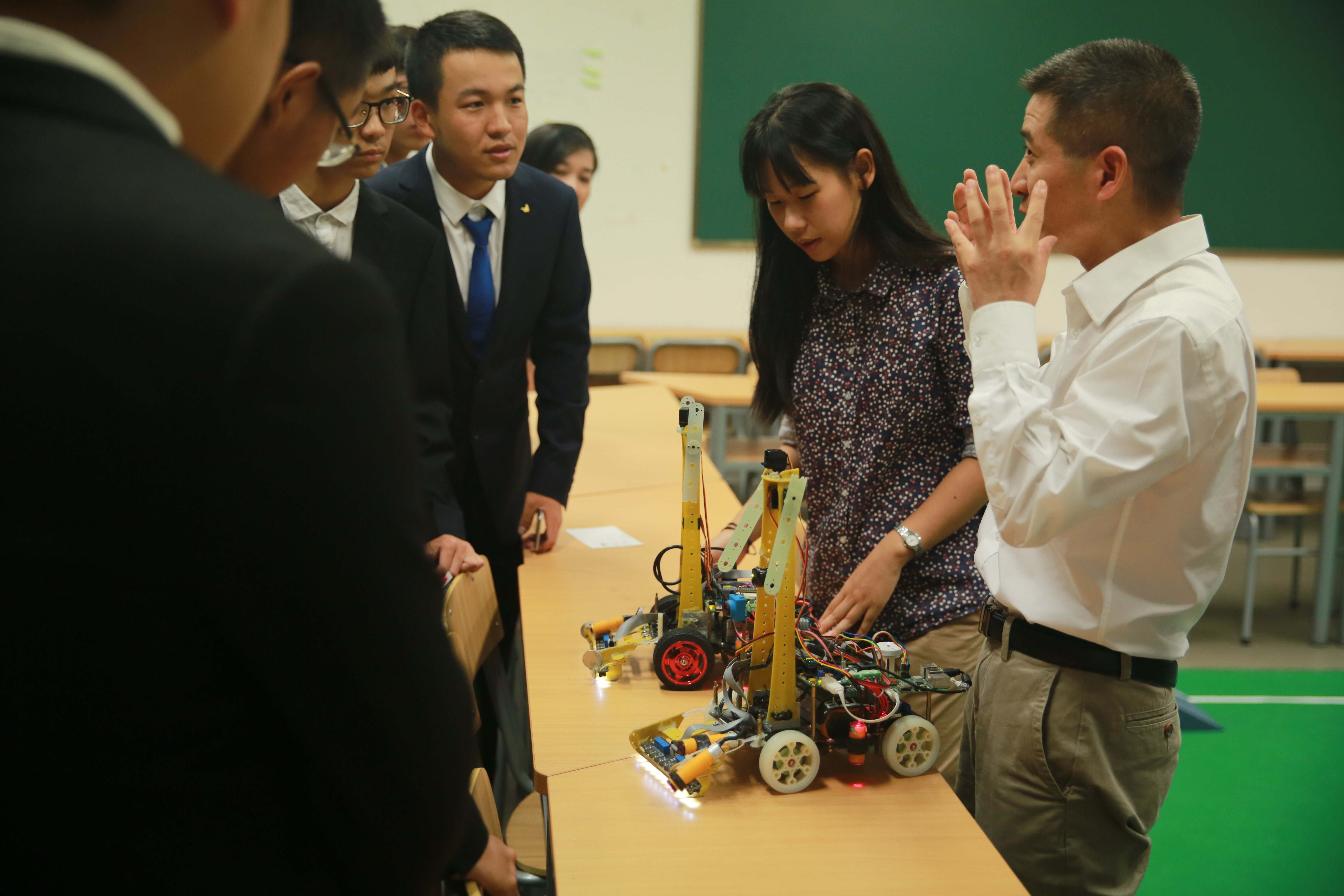 14:00,17级新生身着挺拔正装陆续走上红毯,在背景墙上贴下对未来的期许、签名并合影,从中德双方教师手中接过“Ich liebe CDAI”明信片与院徽,参观成人视频简介 和机器人团队的展示,庄重而活泼。