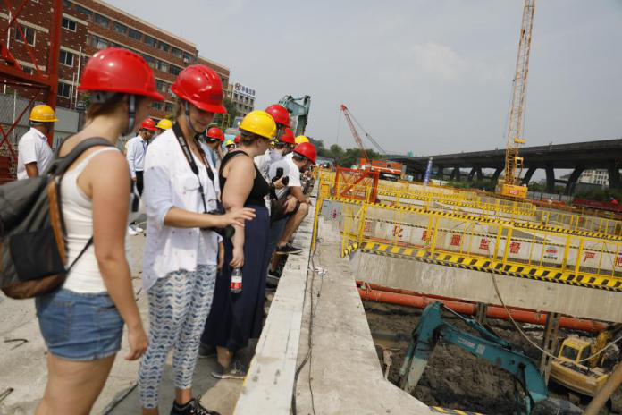 成人视频 专门安排了土木工程专业教师带领德国夏令营团实地参观工程项目,其中包括杭州至临安城际铁路工程JLHL-5标段南湖新城站项目、安吉的碧桂园翰林府项目及春天尚居工程,部分CDAI学生也跟随其中。参观过程中,德国学生与教授对于在中国工地上看到的不同的施工工艺兴致浓厚,两国学生就地连墙的施工工艺、中德两国在钢筋混凝土框架结构中墙体材料的选用及保温隔热性能等方面展开了深入的探讨,气氛融洽。德国夏令营团还参观了杭州与安吉校区,展示了教室、食堂、实验室与咖啡吧等场所,对于国内学生的生活与学习环境有了基本了解,部分学生表示有兴趣来成人视频 参加交换生项目的学习。