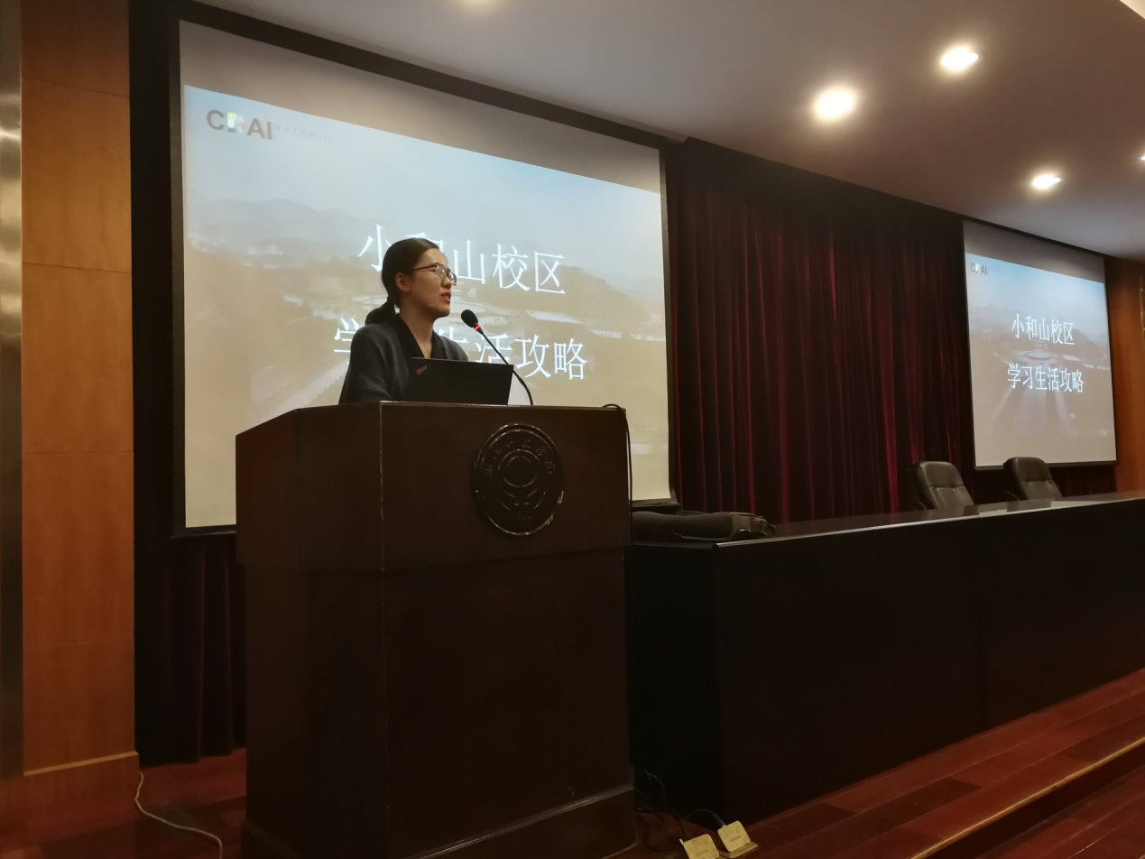 10月12日晚,在小和山校区行政楼328报告厅开展了多个针对全体16级学生的报告,包括“德语水平确认考试”、“德国教授授课注意事项”、“小和山学习生活攻略”及“职业生涯发展规划”等。“德语水平确认考试”由赵千里老师主讲,她介绍了考试内容和考试方式,传授了考试技巧,并激励大家更努力地投入到德语学习之中;金韶霞老师向大家讲解了“德国教授授课注意事项”,包括课堂和课后的注意事项,帮助大家更好地适应德国教授的课程;沈阳涛老师从生涯规划指导方面,通过讲解当今大学毕业生的就业形势以及就业过程中的一些社会现象引导学生们尽早地明确自己的就业方向,积极开展生涯规划;唐雨青老师则从校园学习生活的细节着手,向大家讲解了小和山校区学习生活攻略。
