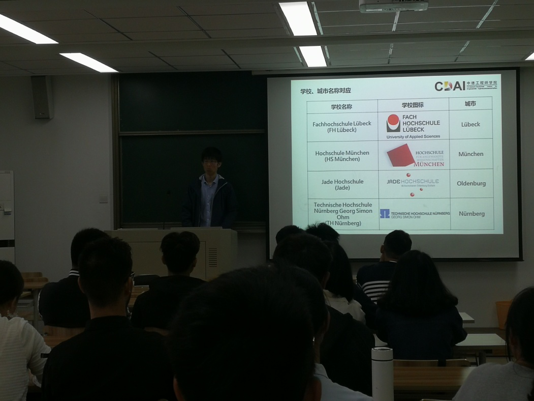 10月10日,王俊卿老师针对16级土木工程专业的全体学生做了关于“出国选拔及成人视频 赴德交流项目介绍”的讲座,对成人视频 合作院校、所在的城市、对应课程表等做了详细的介绍;范佳静副书记介绍了交流项目选拔条件及出国条件,提醒同学们关注自己的学业状况。