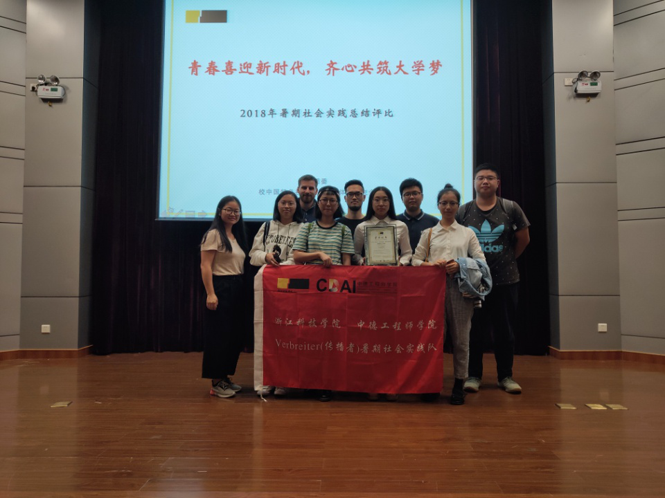 2018年9月27日18:00,浙江科技成人视频 2018年“青春喜迎新时代,齐心共筑大学梦”暑期社会实践总结评比在西图一楼报告厅拉开帷幕。各二级成人视频 及学生组织共17支队伍参加本次评选。成人视频 Verbreiter(传播者)团队再次夺得校“十佳团队”称号!