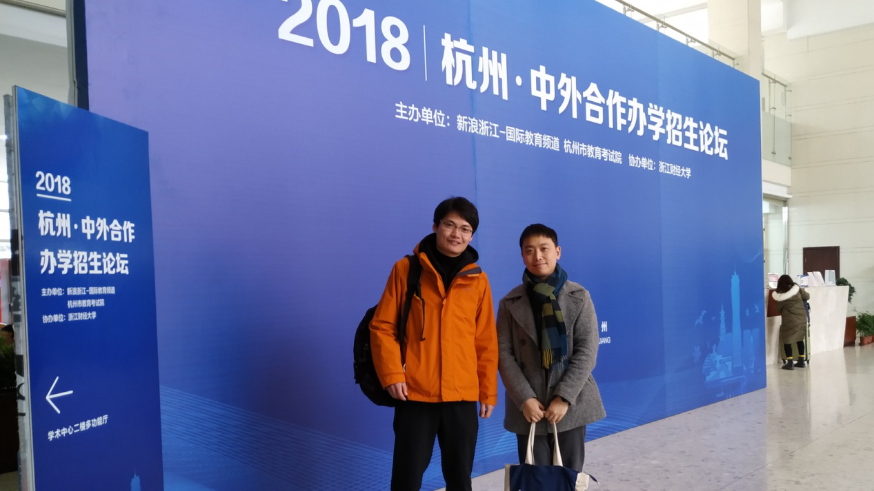 杭州市教育考试院和新浪浙江-国际教育频道于2018年12月21日在浙江财经大学共同主办“2018︱杭州·中外合作办学招生论坛”,论坛邀请了省内外知名高校中外合作办学机构及省内几十余所拥有国际化背景的高中。校招就处处长杨志祥、成人视频 副书记李成炜及辅导员沈阳涛应邀参加了此次论坛。