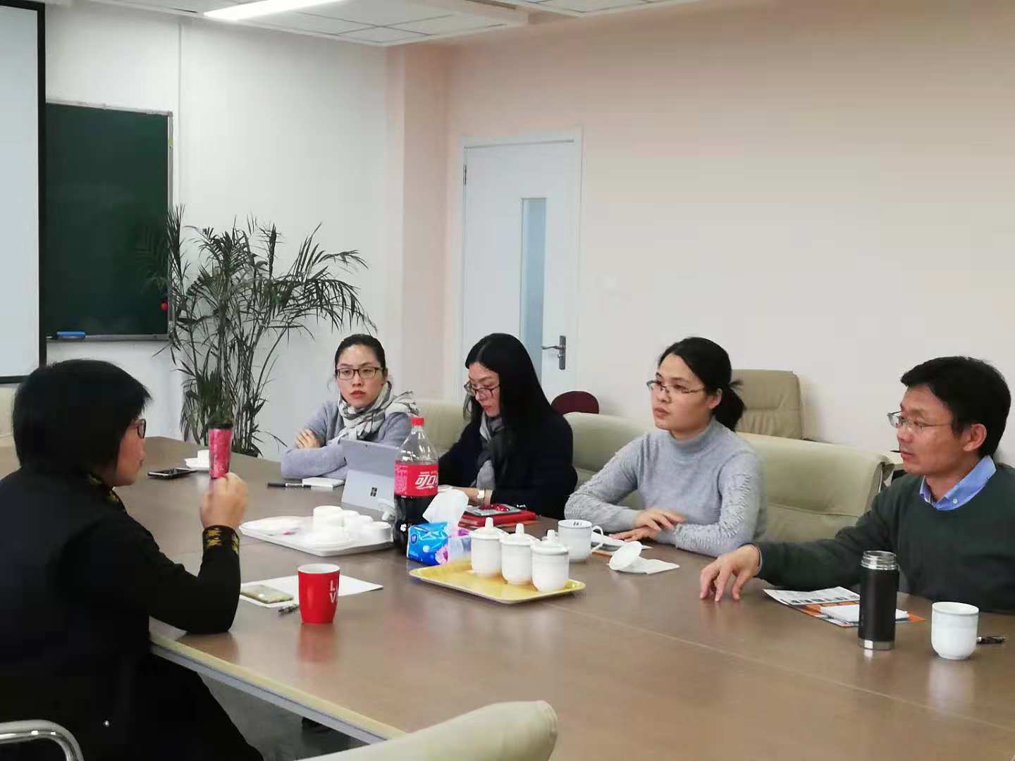 2018年12月7日,上海理工大学上海-汉堡国际工程成人视频 德语教研室王晔老师等一行四人莅临成人视频 调研德语课程设置、学时分配等情况,成人视频 德语语言中心赵千里、李权老师与来宾交流探讨。