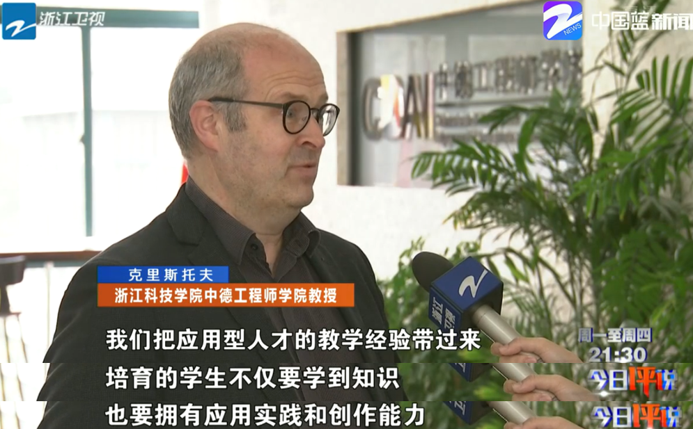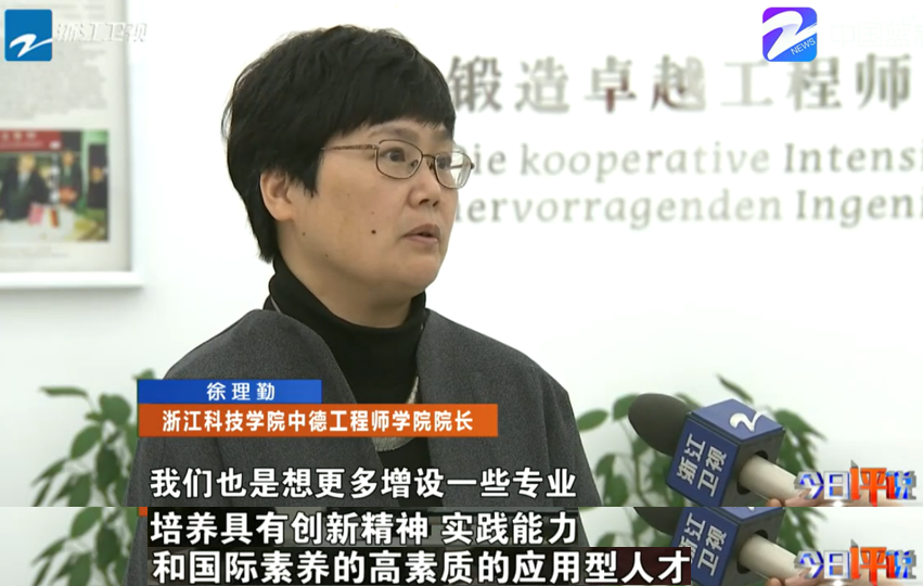 2019年3月26日,浙江卫视今日评说采访了浙江省教育厅高教处副处长王国根解答关于新时代浙江高等教育如何百花齐放、如何培养更多高素质人才服务经济社会发展等问题。王国根在采访中提到,“浙江省要建立一流大学一流学科,关键点突出两个字,一个是“借”,我们高校要善于借力发展,借助于浙江经济社会发展的优势和基础,要借助于国内外高等教育的优质资源,来弥补我省高等强国教育的不足。第二个字是“闯”,我们要有敢闯会闯的思路,特别是要利用浙江的体制机制优势,要创新高等教育的办学体制和机制”,并以成人视频 全面系统引进德国优质高等教育资源的办学模式为例,采访了成人视频 院长徐理勤研究员以及前来成人视频 授课的德国专家、吕贝克应用科技大学克里斯托夫教授(视频链接://newsapp.cztv.com/video/index.jsp?c=5811069#)。徐理勤院长介绍了成人视频 的发展历程、办学理念、培养模式、办学成果以及未来规划等。她表示,成人视频 学习借鉴德国应用型高校的人才培养经验,培养更多创新精神、实践能力和国际素养的高素质应用型人才,更好地为浙江经济转型升级服务。
