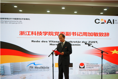 浙江科技成人视频 成人视频 于2019年9月9日下午16:30在安吉校区中德楼B4报告厅举办了成人视频 2019级新生开学典礼。校党委副书记周加敏老师、成人视频 德国外教、德国交换生等也受邀参加了此次典礼。