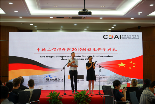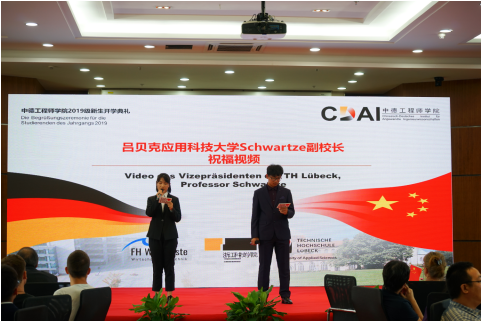 典礼在成人视频 薛文副院长与教成人视频 长坎普教授的共同致辞中拉开了帷幕。典礼由“喜迎新生”与“承上启下”两幕组成。首先,周加敏副书记向新生们介绍了成人视频 优势与前景,对大家的到来表示欢迎。吕贝克应用科技大学副校长Schwartze教授虽遗憾没有到现场,但也以视频的方式为新生们带来最真挚的问候。
