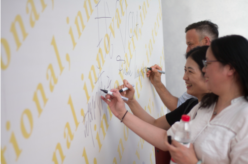 (19级新生在签名墙处合影留念)