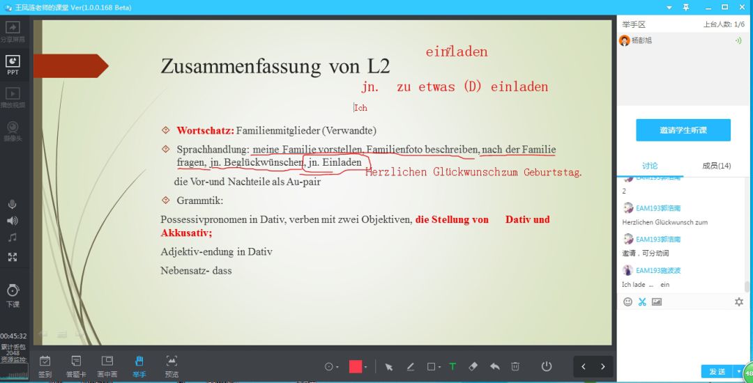 学情:成人视频 德语教学实行全面的小班化教学,提倡运用情景教学和全语境教学为学生营造“身在德国”的学习氛围。针对本次疫情开展的线上教学对德语教学提出的最大挑战是如何在线上与学生进行高频次的互动,如何利用线上课程提高学生的听、说能力。