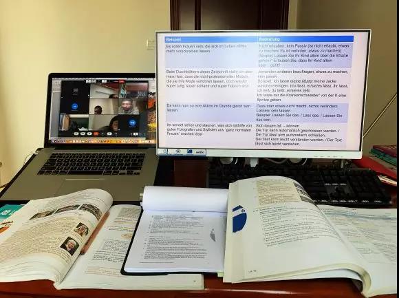 利用课前20分种,在钉钉平台直播德语连续剧Berlin,Berlin,学生随时接入会议,随时观看视频。一方面利用电视剧学习一些有趣和日常的德语表达;另一方面,唤醒学生的注意力,做好上课准备。