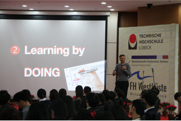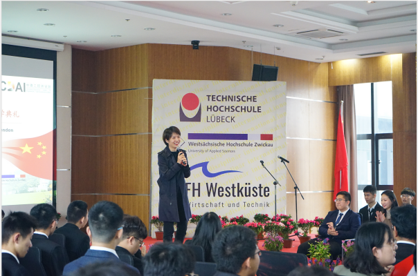典礼在成人视频 薛文副院长与教成人视频 长坎普教授的共同致辞中拉开了帷幕。典礼第一幕为“喜迎新生”。首先,单校长介绍了成人视频 的特色与优势,并向新生们表达了热烈的欢迎与诚挚的祝愿。受疫情影响,吕贝克应用科技大学的Schwartze副校长和茨维考应用科技大学的Schumann教授未能来到典礼现场,他们通过视频的形式向新生表达了最真挚的问候。