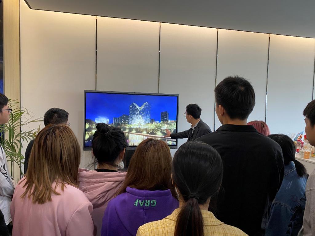 首先,同学们分为两组参观了该公司的文化展厅,让同学们对公司的发展历程、成人视频、产品业务等有了深入直观的了解。紧接着,在几位设计所所长的带领下,同学们观看了部分优秀的设计作品,观摩了各所员工们的现场作业,感受了现场的工作环境。最后,公司专门邀请了设计研究院方案设计所所长童鹏飞为同学们更加详实地介绍了公司的一些情况,同时,人力资源部总监汪黎霞女士也详细介绍了公司的岗位需求,并与同学们进行了现场答疑互动。同学们纷纷咨询了暑期实习与毕业后就业相关问题,互动现场气氛热烈。