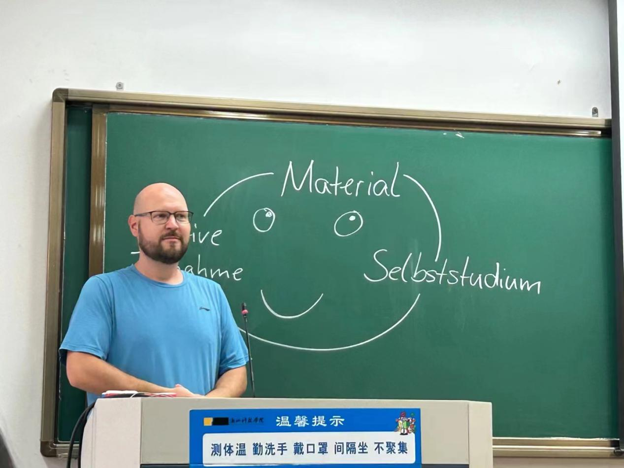 9月19日,德语中心主任丁佳宁带领大一模块德语教师和外教Herr Dahlke共同为23级新生带来德语主题分享。