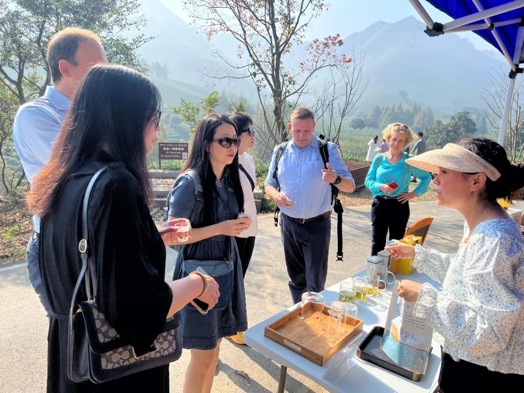 中德两国同事此行一同品尝了不同节气采摘的白茶,了解了安吉白茶的不同品种、种植过程和采摘技巧。德国同事们表示,此行不仅享受了安吉白茶园的自然风光,对安吉白茶文化也有了新的认识。在交流中双方进一步增进相互了解和友谊。