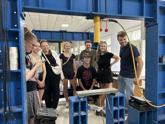本次夏令营活动,德国师生与成人视频 22级/23级和成人视频 23级土木专业学生一起完成了搅拌试验、抗压试验和抗折试验。土木系教师沈潇扬介绍了高强度混凝土的技术参数、优化配比、实验室制备情况和应用前景,德国师生对我国建筑事业的蓬勃发展表示惊叹。参观了两个杭州市重点工程:中国京杭大运河工程和浙二医院总院区(萧山),这两个工程从建筑学到结构工程的技术都代表了当前中国建筑的高水平,同学们很热真地参观了高新技术,见识了飞速发展的中国建设业创造的奇迹。