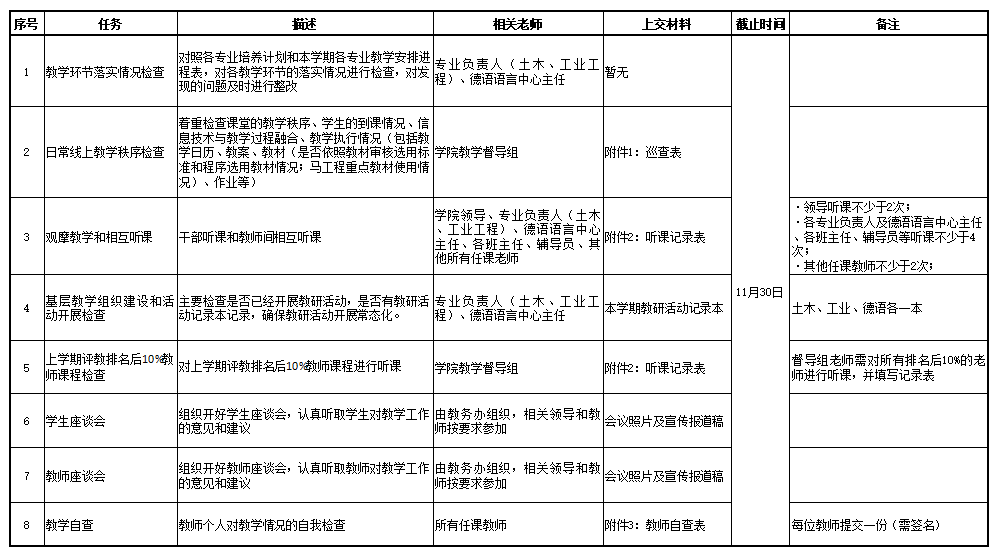 成人视频 定于第9周、第10周(11月13日~11月26日)进行期中教学检查现将成人视频 期中教学检查任务分配如下表,请老师们按要求及时完成任务并将相关材料纸质版交至B4-518办公室,电子版发送至邮箱[email protected]