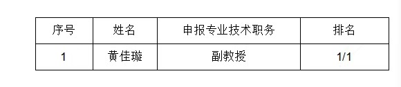 经建工成人视频 学科评议组评议、个人述职和民主测评、成人视频 考核推荐组评议推荐,一致同意推荐黄佳璇晋升副高级专业技术职务。高级专业技术职务申报人员排序推荐结果如下: