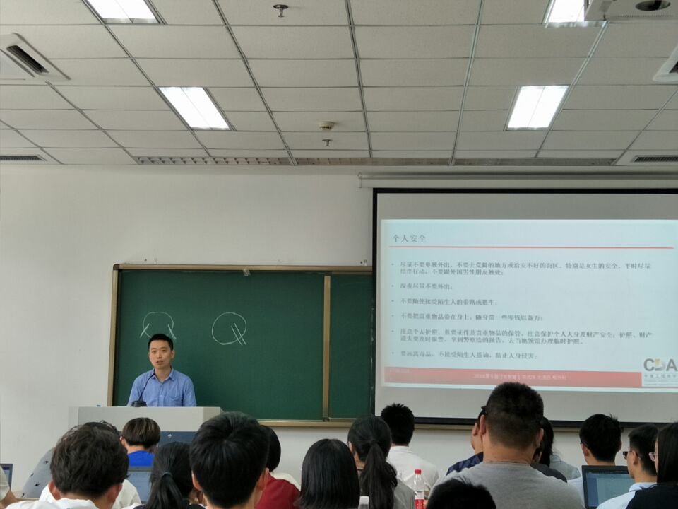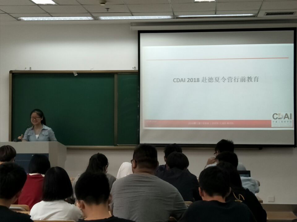 2018年6月27日13:30在中德D311面向2016级赴德夏令营同学召开行前教育,直属党支部副书记、学生工作负责人李成炜和两位带队老师沈潇扬、熊书利参加。