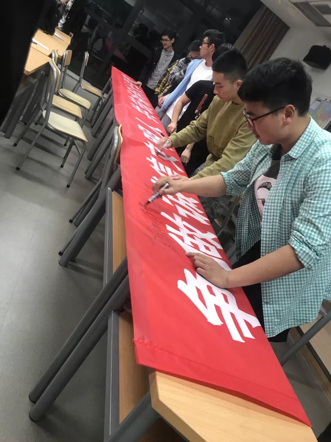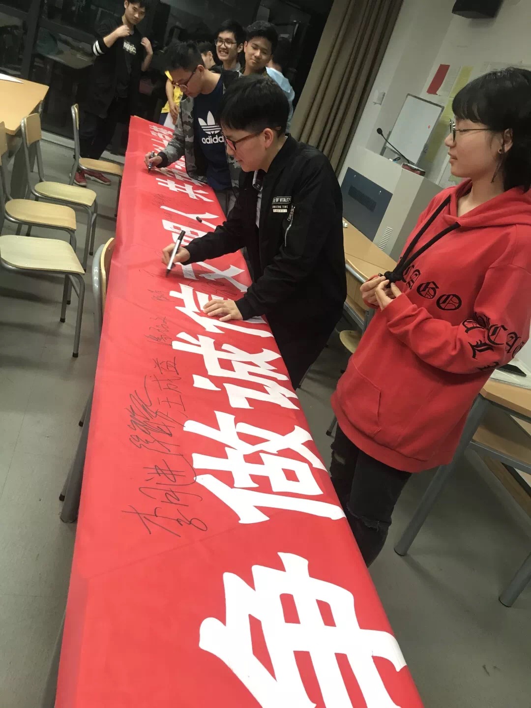 同学们逐一在横幅上签名,以表自己诚信为人的决心。我们希望通过这种方式,将诚信这个词烙在同学们的心中,能够对同学们现在及将来的生活有积极的影响。签名完成后,团支部进行了合影留念