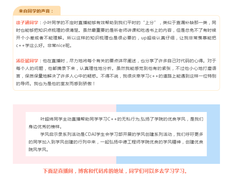 某直播平台为何聚集CDAI学子?童鞋们C++水平为何突飞猛进?他又为何成为同学心中新晋男神?欢迎走进本期“学风启示录”之“C++主播——叶超炜”