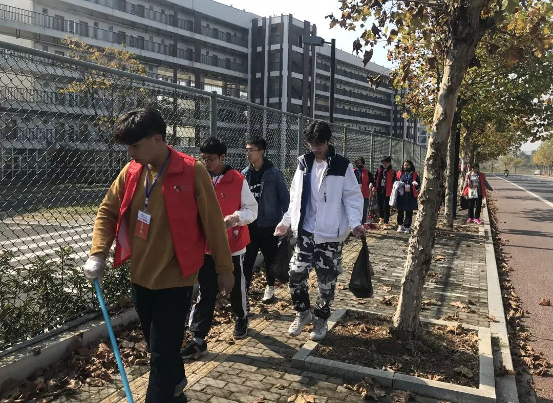 2018.11.12日上午10点整,为创建干净整洁的绿色校园,树立节能环保的意识,成人视频 的志愿者们开展了此次校园周边垃圾清理活动。
