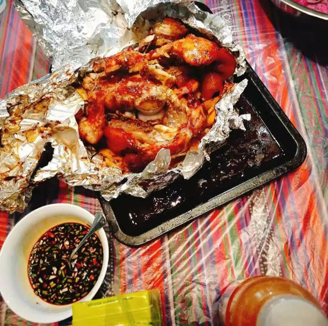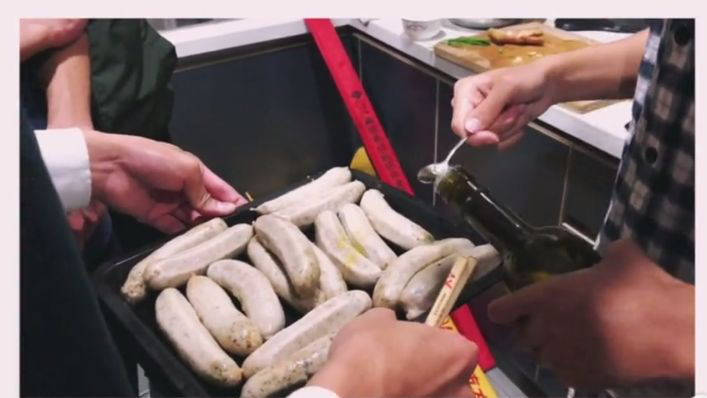 此次活动共分为三个部分进行,分别为烤德国猪肘子,制作水果沙拉和制作德式香肠。在整个过程中在负责人教授方法后,大家分工合作,以小组为单位,从烤猪肘的配置调料、刷酱腌制、装盘烤制到水果沙拉的洗切、装盘再到德国香肠的拆解烤制,活动井然有序。