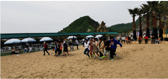 辅导员熊书利首先对大家的到来表示欢迎。她希望大家能勇于表达、敢于交流,增强对彼此的了解。团队成员们分别就家乡进行展示,如看潮圣地海宁、英雄城南昌、港通天下宁波、国际花园城市衢州和鱼米之乡湖州等。中国文化博大精深,各自的呈现别具特色。留学生们也做了精心的准备,如赞比亚的风土人情,印度尼西亚的人口、宗教和地理风貌,乌克兰的美食美景等,同学们听得十分认真,不断发表所思所想,现场气氛热烈融洽。随后的团建活动进一步拉近了中外同学彼此的距离。轻松的氛围下,大家相互帮助、合作和鼓励,成员们一起完成了沙滩排球、拔河等项目,创造了一个个超越自我的精彩瞬间。