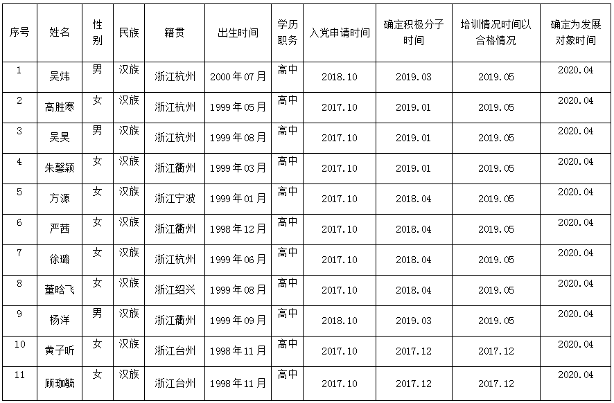 (结束)关于拟接收吴炜等同志为预备党员的公示单