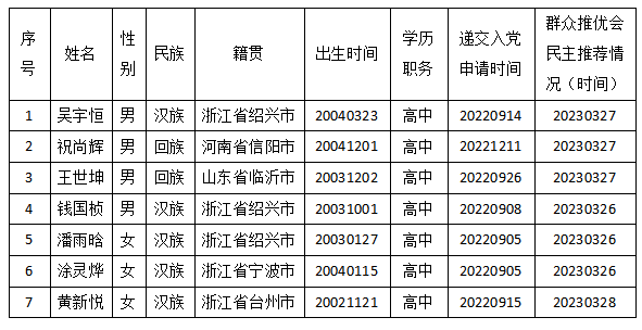 根据浙江科技成人视频 成人视频 发展党员工作程序有关规定,下列同志自愿提出入党申请,经成人视频 直属党支部征求党内外群众意见和培养考察,同意以下同志为入党积极分子。具体名单公示如下: