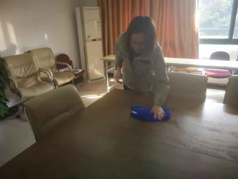 党员同志们分工明确,干劲满满,有的擦桌椅门,有的扫地拖地,有的洗咖啡机等,将成人视频 的党员之家、咖啡吧、会议室等打扫得一尘不染。